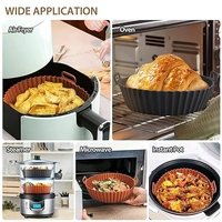 - Package Content - Air Fryer Liners I Material: Silicone I Color: Multicolor I Shape: Round I Size: top diameter: 8 inches, bottom diameter: 6.5 inches; height: 2.4 inches and Top 6.5 inches / Bottom 5.5 inches/ Height 1.8 inches.I Raised lines on the base allows proper and even circulation of heat. Safe to be used in oven, microwave, freezer and dishwasher I 3D drainage groove, which facilities the oil to flow to the edge groove and the food tastes more delicious.