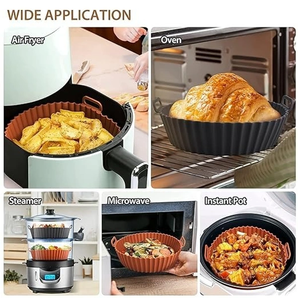 - Reusable air fryer silicone pots can replace other air fryer pans or disposable parchment paper. The carefully designed 360°air circulation structure makes the heat distribution more uniform so that your food can be cooked perfectly in a shorter time & no more risk of flammability.