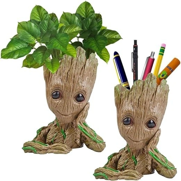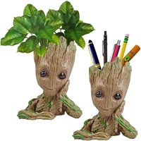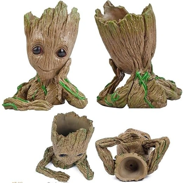 Unique Shape Marvel Avengers Infinity War Pot Groot Wooden Look Tree Flowerpot Cum Pen Container- Tree Man, 16 cm, White, 1 Piece